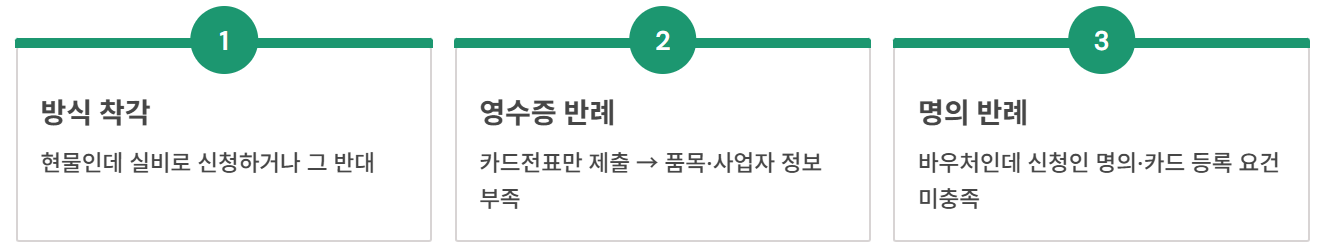 - 명의 오류: 바우처인데 신청인 명의 요건 미충족