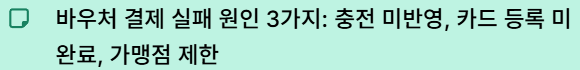 | 명의/가맹점 제한(바우처) | 등록/결제가 막히는 주요 원인 | 바우처 안내, 카드 앱/가맹점 안내 |