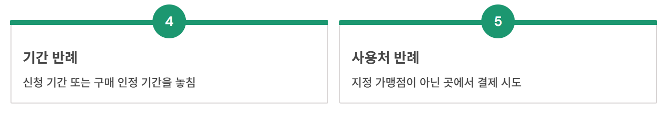 - ④ 기간 반례: 신청 기간 또는 구매 인정 기간을 놓침