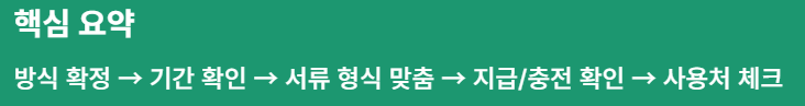 요약: 방식 확정 + 기간 확인 + 증빙 형식만 맞추면, 대부분의 불이익은 예방됩니다.