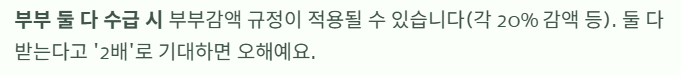 | 부부 둘 다 수급 시 | 부부감액 규정 적용 가능(각 20% 감액 등) | 둘 다 받는다고 ‘2배’로 기대하면 오해 |
