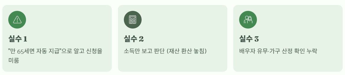 - 실수 1: “만 65세면 자동 지급”으로 알고 신청을 미룸