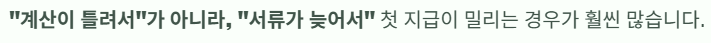 “계산이 틀려서”가 아니라, “서류가 늦어서” 첫 지급이 밀리는 경우가 훨씬 많습니다.