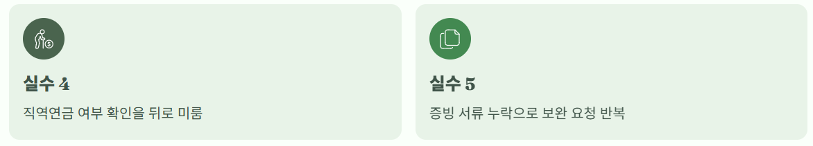 - 실수 4: 직역연금(본인/배우자) 여부 확인을 뒤로 미룸