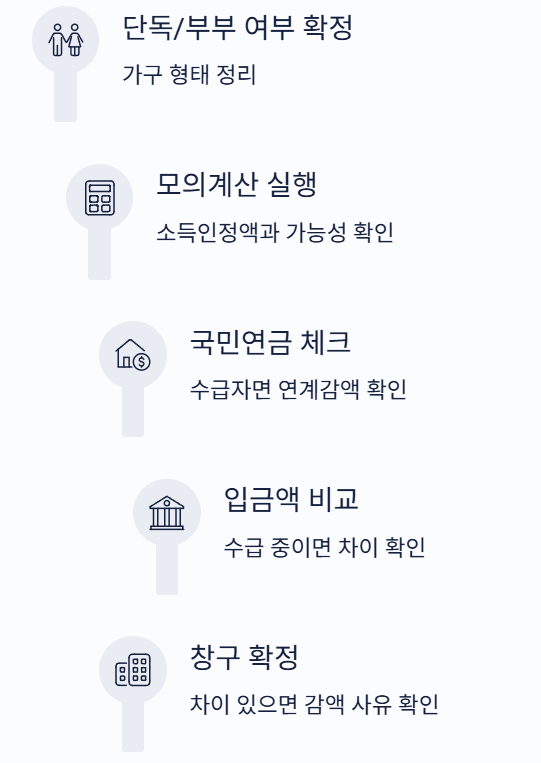준비가 완벽하지 않아도 시작은 가능합니다. 다만 모의계산 결과를 확정처럼 믿지 말고, 차이가 나면 창구에서 근거 확인으로 마무리하세요.