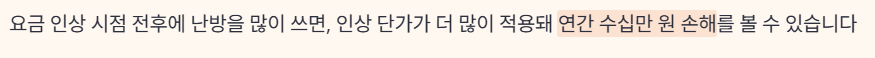 또 요금 인상 시점 직전·직후에 많이 사용하면, 같은 양을 써도 인상 단가가 더 많이 적용돼 연간 기준으로 수십만 원까지 손해를 볼 수 있습니다.