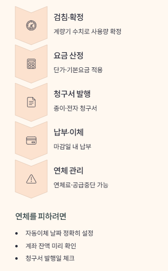 요금이 어떻게 계산되는지만 알고 청구·납부 흐름을 놓치면, 사용량은 줄였는데도 연체료나 가산금 때문에 총 부담액이 줄지 않는 상황이 생길 수 있습니다.