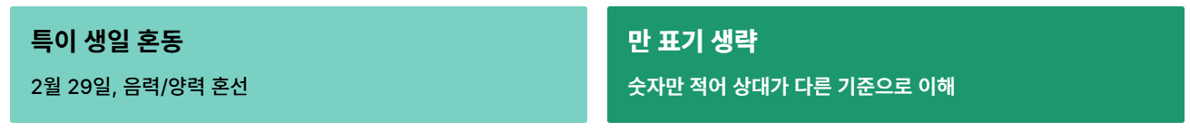 - 특이 생일 혼동: 2월 29일, 음력/양력 혼선