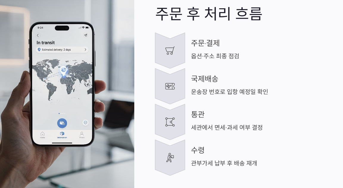 이후 배송·통관·수령까지 이어지는 흐름을 이해하셔야 예상치 못한 관부가세 부담을 줄일 수 있습니다.