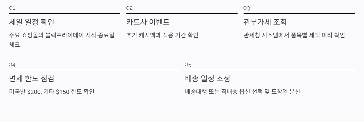 이 카드에서는 미국 블랙 프라이데이 직구 시 가장 중요한 금액 기준과 관부가세 부과 방식에 대해 정리합니다.