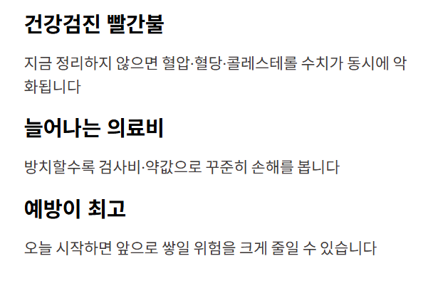 지금 정리하지 않으면, 앞으로 건강검진 결과와 약값·검사비 같은 의료비에서 꾸준히 손해를 보게 됩니다.