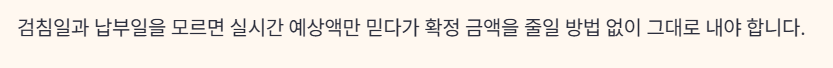 앱에 표시되는 실시간 예상액 역시 참고용이므로, 확정 고지 금액과 차이가 나는지 비교해 봐야 불필요한 누수·과다 청구로 인한 장기 손해를 막을 수 있습니다.