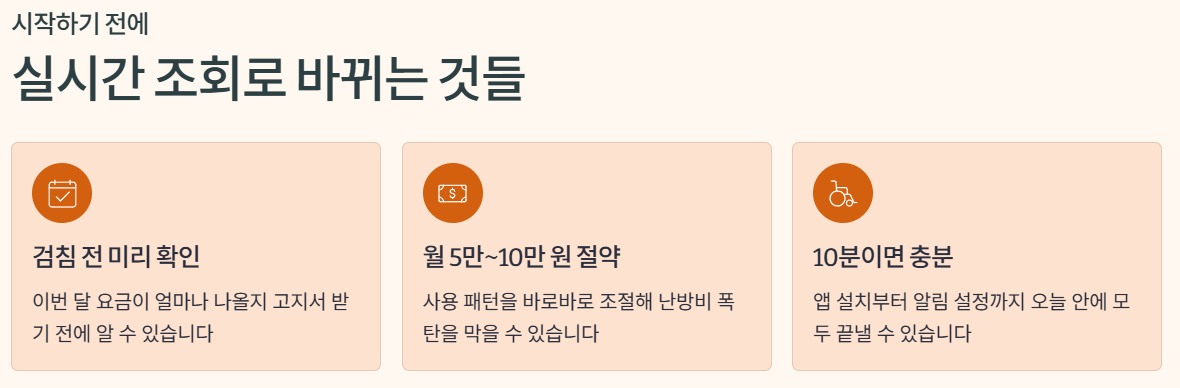 이 부분이 정리되지 않으면 앱만 설치해 두고, 결국 겨울 내내 고지서만 보고 놀라는 패턴을 반복하게 됩니다.
