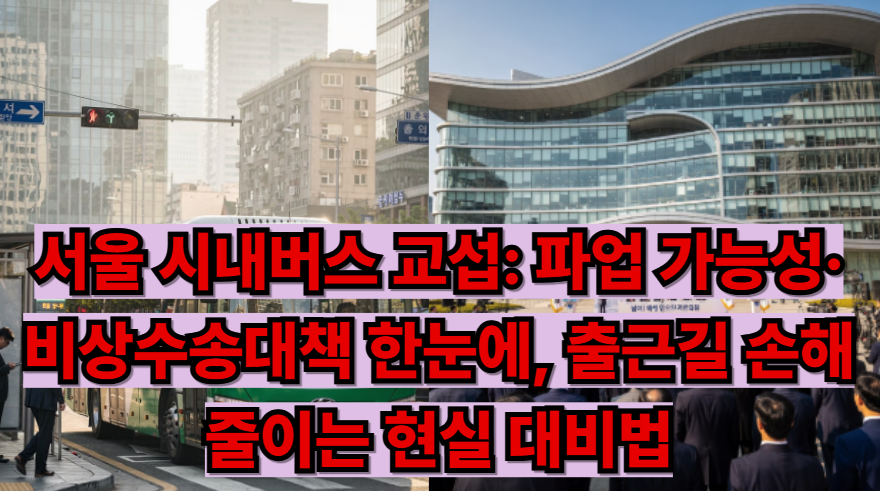 서울 시내버스 교섭이 결렬되면 시민이 가장 먼저 체감하는 건 “이동시간”입니다. 버스가 끊기거나(전면) 줄어들면(부분/지연), 출근길은 대기 → 환승 실패 → 지하철 혼잡 → 택시 대기로 연쇄가 생깁니다. 특히 버스를 “집→역 연결”로 쓰는 분들은, 버스 한 번이 빠지는 순간 동선이 통째로 무너질 수 있습니다.