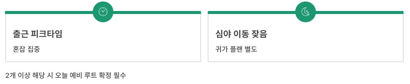 - 출근 피크(07~09시)면 출발 시간을 최소 30분 앞당김