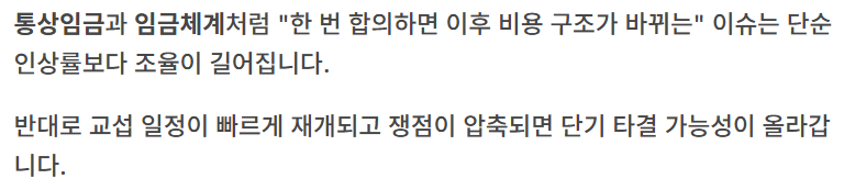 - 단기 종료 쪽: 교섭 재개 + 쟁점이 인상률 중심으로 좁혀짐