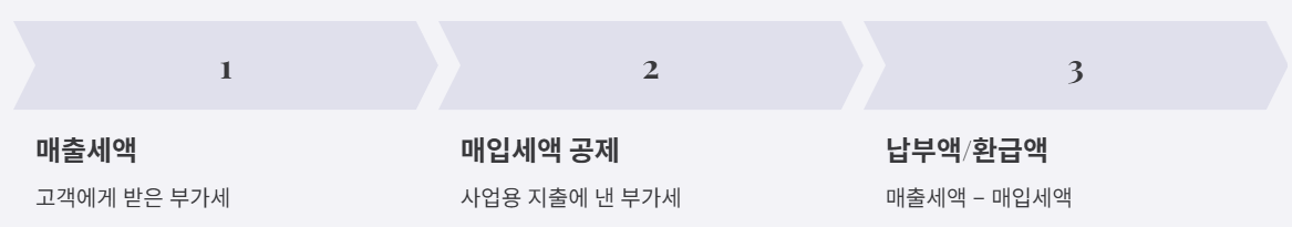 소상공인 부가세 신고에서 납부액(또는 환급액)은 보통 “매출세액 − 매입세액”으로 결정됩니다. 즉, 매출을 ‘더 적게’ 쓰는 기술이 아니라 매입 공제 자료를 ‘빠짐없이’ 모으는 습관이 결과를 바꾸는 구조예요.