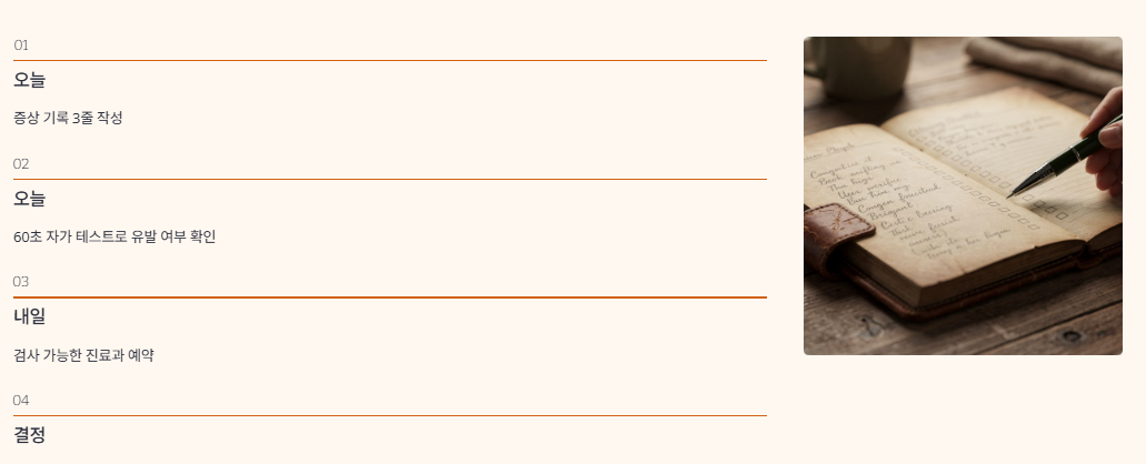- 오늘: 증상 기록 3줄을 남깁니다.
