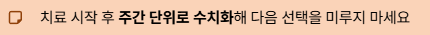 치료를 시작했다면 “얼마나 좋아졌는지”를 주간 단위로 수치화해 다음 선택을 미루지 마세요.