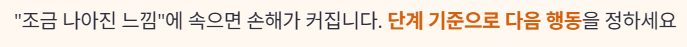 “조금 나아진 느낌”에 속으면 손해가 커집니다. 단계 기준으로 다음 행동을 정하세요.