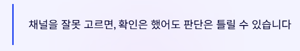 채널을 잘못 고르면, 확인은 했어도 판단은 틀릴 수 있습니다.