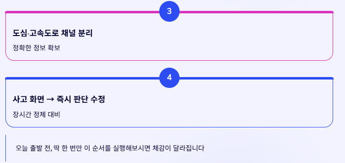 - 사고·공사 화면이 보이면 우회 가능성을 우선 검토합니다.
