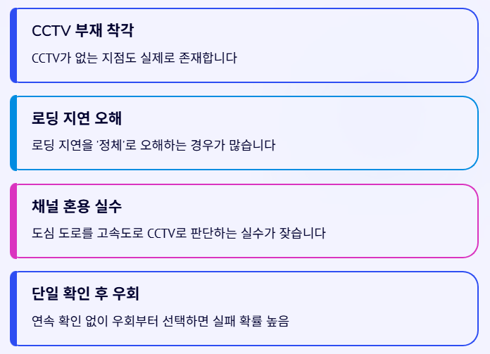CCTV를 봤는데도 막히는 경우는, 판단 기준 없이 화면만 봤기 때문입니다. 기준을 정해두면 우회 실패를 줄일 수 있습니다.