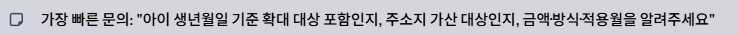 가장 빠른 문의 한 문장: “아이 생년월일 기준 확대 대상 포함인지, 주소지 가산/상품권 대상인지, 금액·방식·적용월을 알려주세요.”