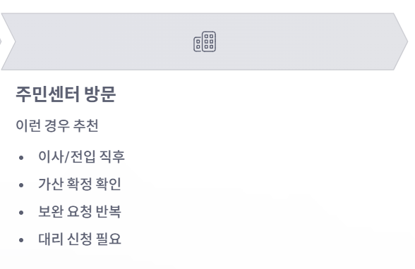 | 이사/전입 직후 | 전입 완료일·가산 기준일 | 전입 완료 후 가산/지급 방식 재확인 |