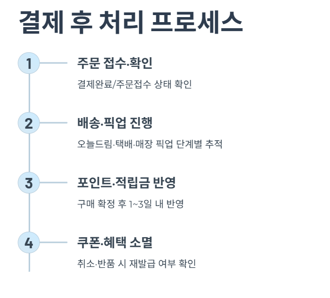 - 결제 후에는 주문 상태·포인트 적립·쿠폰 소멸·반품 시 재정산 기준까지 함께 점검해 두면 이후 불필요한 손해를 줄일 수 있습니다.