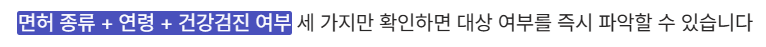 - 연령과 면허 종류를 기준으로 정기 적성검사 대상인지, 단순 갱신 대상인지 구분합니다.