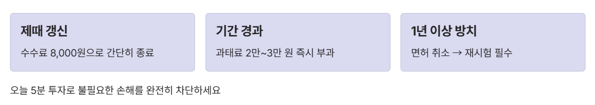 그러나 전체를 한 번에 비교해 보면, 언제 정기 적성검사를 받고, 언제 재발급·자진반납을 고려하는 것이 내 시간·비용·안전 측면에서 가장 유리한지 훨씬 선명해집니다.