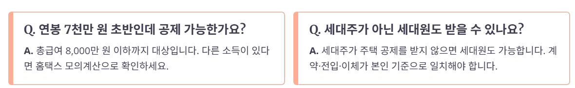 특히 소득과 무주택 여부를 제대로 보지 않고 포기하는 사례가 많은데, 최근 기준이 완화되면서 생각보다 더 많은 분들이 대상에 들어옵니다.