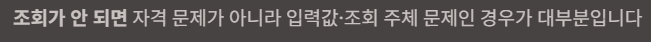 조회가 안 되면 자격 문제가 아니라 “입력값/조회 주체” 문제인 경우가 많습니다.