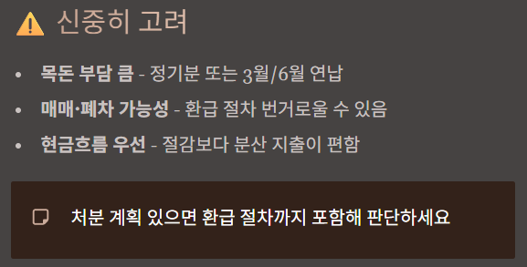 매매·폐차 가능성이 크면 “절감”과 “환급 번거로움”을 함께 계산해야 후회가 없습니다.