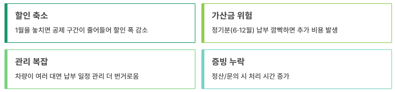 - 손해 3) 차량이 여러 대면 납부 일정 관리가 더 번거로워짐