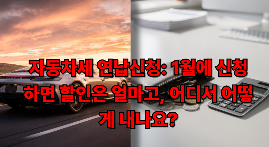 자동차세는 어차피 내야 하는데, “언제 내느냐”를 놓치면 같은 세금을 더 내는 구조가 됩니다. 2026년 기준 1월 자동차세 연납신청은 11개월분(2~12월)의 5% 공제(실공제율 약 4.58%)가 안내되는 경우가 많아요.
