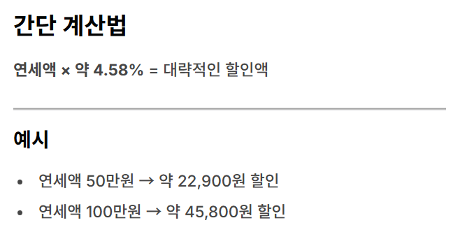 가장 빠른 계산은 “연세액 × 약 4.58% = 대략 할인액”, 최종은 고지/납부 화면 금액으로 확정입니다.