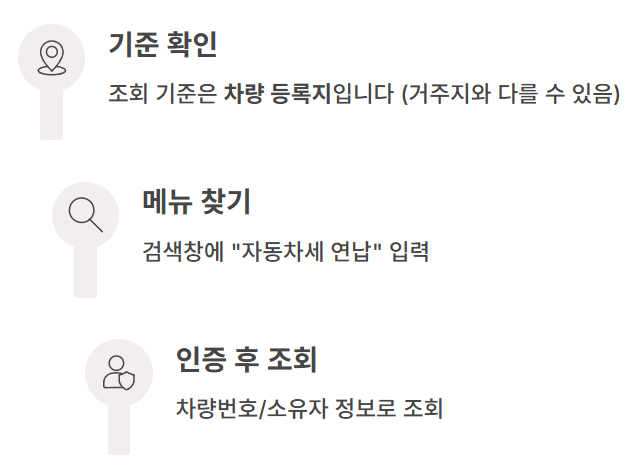 | 차량 등록지 | 조회·고지 기준이 등록지인 경우가 많음 | 자동차등록증에서 등록지 확인 |