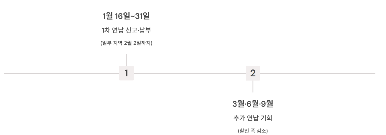 - 추가 기회: 3·6·9월에도 연납 신청 창구가 열리는 경우가 있음(할인 폭은 보통 감소)