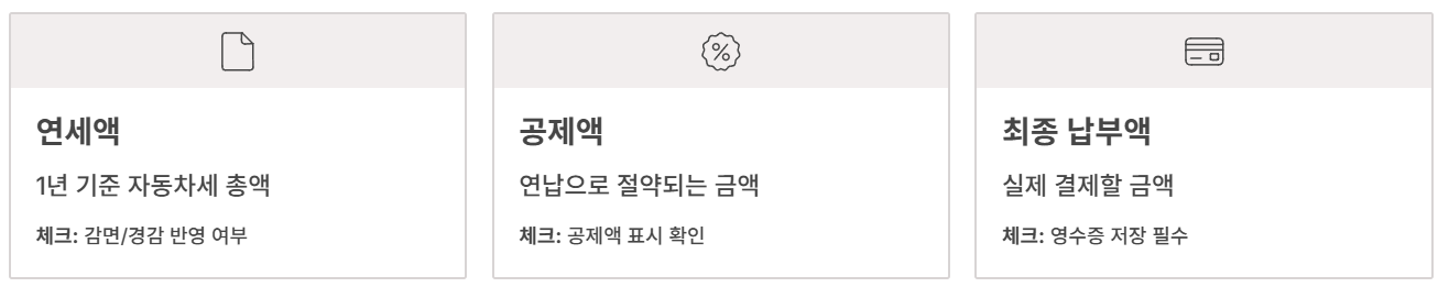 연납은 할인보다 “실수 방지”가 먼저입니다. 등록지·명의·계획·증빙 4가지를 확인하고 들어가면, 대부분 5분 안에 끝납니다.