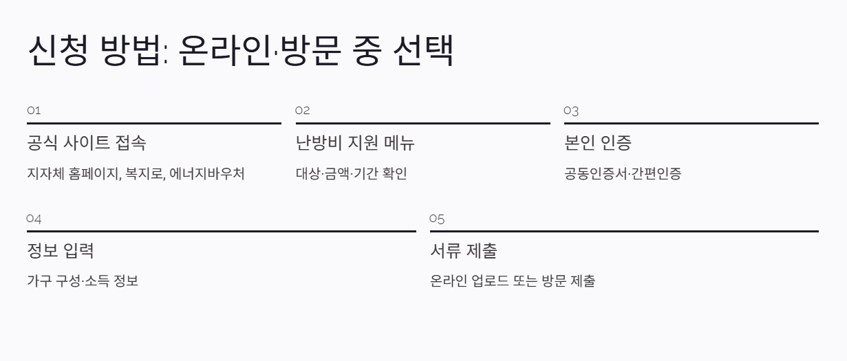 난방비 지원을 원활하게 받으시려면 신청 전에 본인 인증 수단과 필수 서류를 먼저 갖추어 두는 것이 좋습니다.