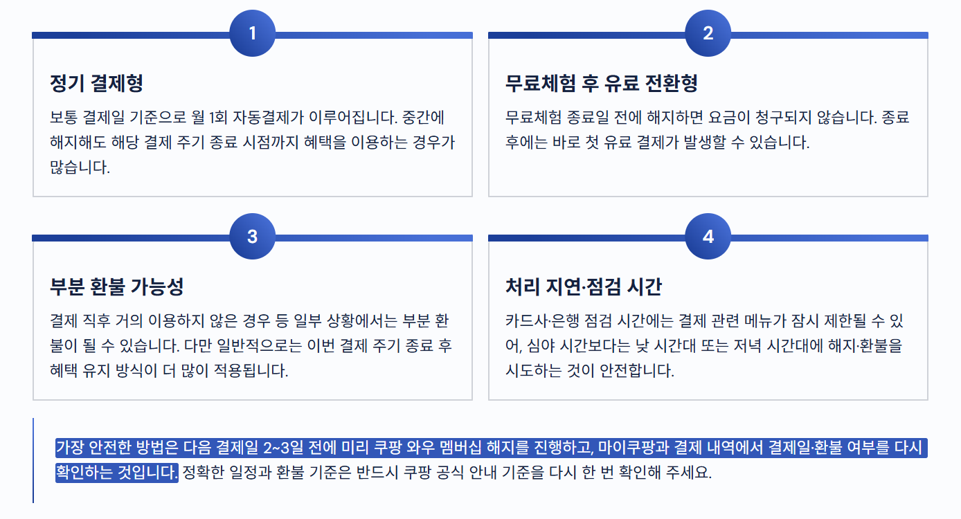 구체적인 결제일·환불 기준·처리 기간은 항상 쿠팡 공식 고객센터·공지에서 최신 내용을 반드시 확인하셔야 합니다.