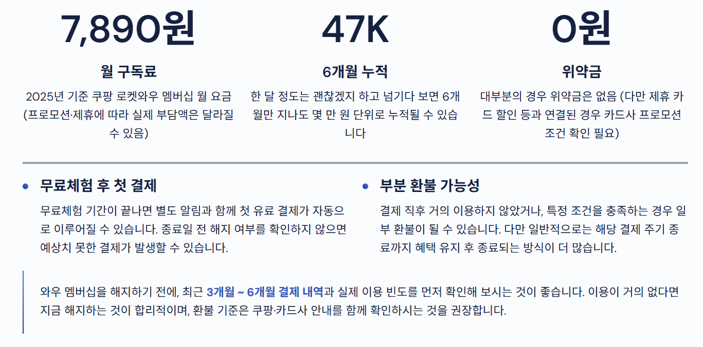 와우 멤버십 이용 시 기본 요금 구조와, 해지 전후로 어떤 비용·환불 이슈를 확인해야 하는지 정리해 드립니다.