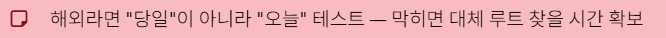 해외라면 “당일”이 아니라 “오늘” 테스트하는 게 핵심입니다. 막히면 대체 루트를 찾을 시간이 생깁니다.