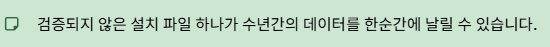 - 크랙·불법 설치 파일: 공식 사이트가 아닌 곳에서 내려받은 실행 파일은, 한글 실행 프로그램처럼 보이더라도 백그라운드에서 암호를 탈취하거나 파일을 암호화하는 악성코드를 함께 심어둘 수 있습니다.