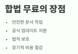 - 학교·공공기관 PC 사용자: 이미 정품이 설치된 환경에서는 굳이 추가로 다운로드할 필요 없이, 기관 라이선스 범위 안에서 사용하는 것이 가장 안전합니다.