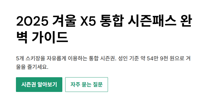 2025 스키장 개장일 X5 시즌권 구매법 역시 이런 흐름을 전제로 설명하지만, 실제 판매 일정과 유효기간은 매년 조금씩 달라집니다.