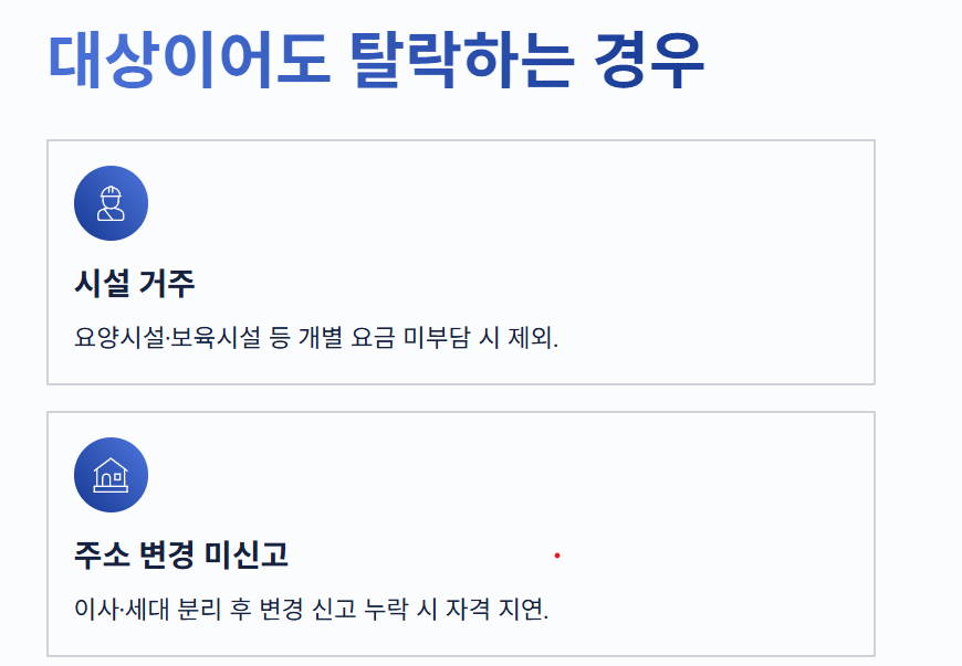 - 주소·세대원 변경 신고 누락: 전년도에 받았더라도 이사나 세대 분리·합가가 있었는데 변경 신고를 하지 않으면, 자동신청 대상에서 빠지거나 자격 판정이 지연될 수 있습니다.