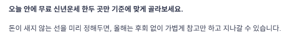 - 12월 중순 이후에는 포털·카드사·통신사에서 “올해 한 번만 제공”하는 무료 신년운세 이벤트를 먼저 확인합니다.